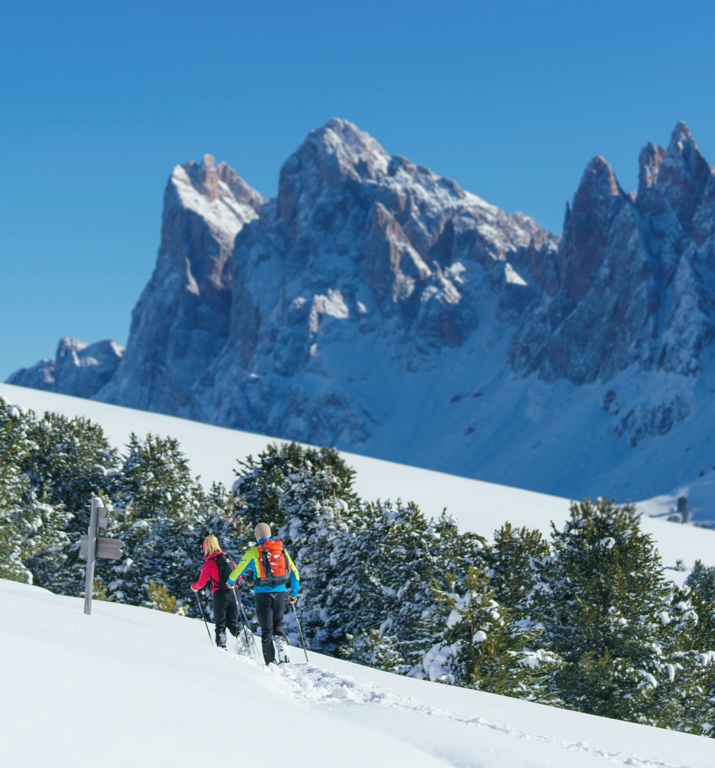 Adatte a tutti, in quanto non richiedono particolari competenze tecniche o esperienza, sono un ottimo modo per immergersi nella natura delle Dolomiti, avvolta in un candido manto nevoso che attutisce i suoni creando un silenzio surreale. Insomma, un’attività sportiva che concilia il benessere del fisico e quello della mente.